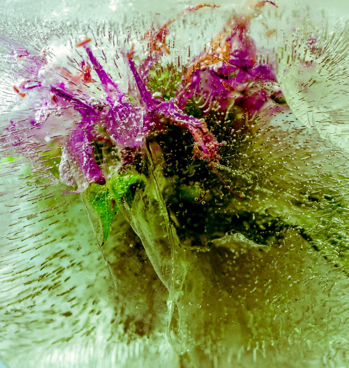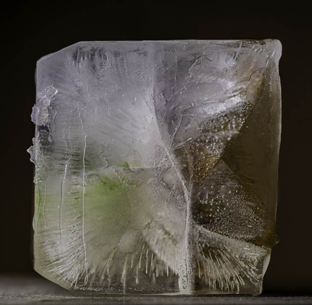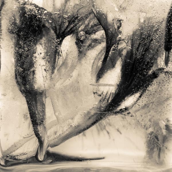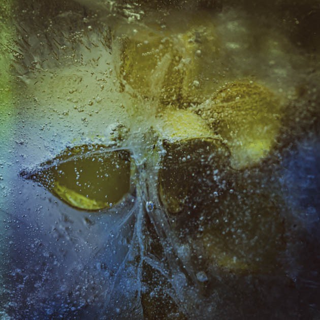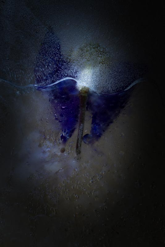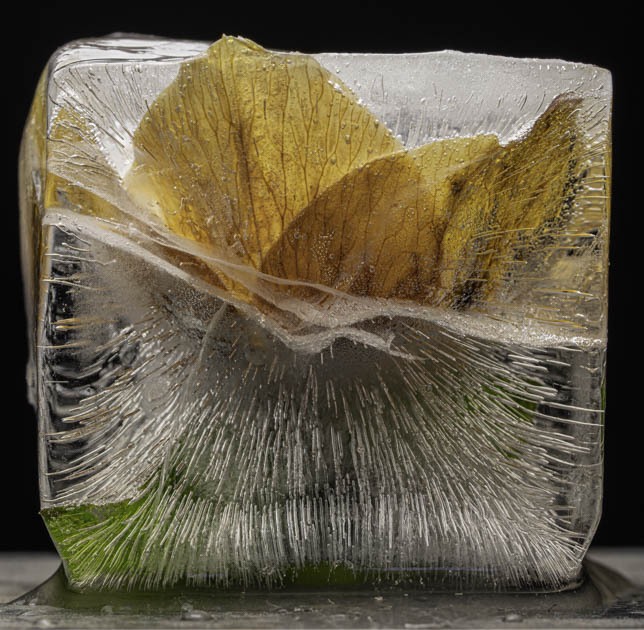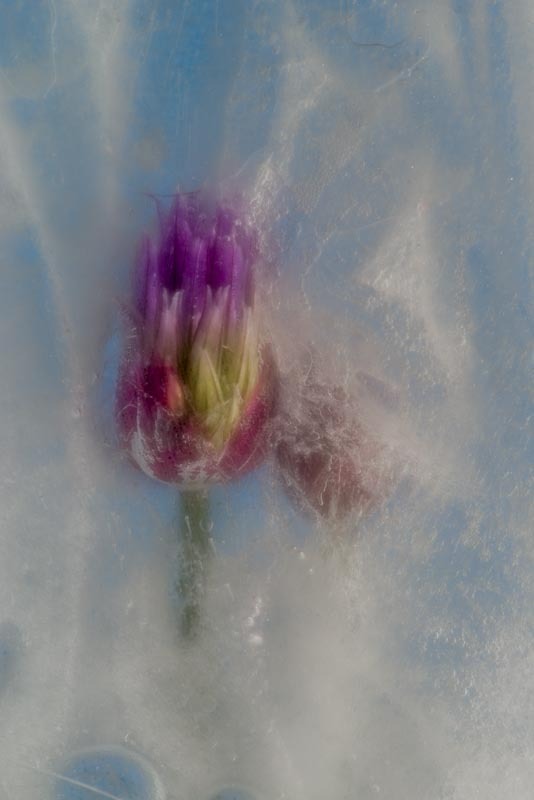 Control is only ever partial. When a macro lens is trained on the subject unexpected possibilities present themselves. Lighting reveals further creative opportunities. If  a flash with a snood that focuses the light to a narrow beam is punched through the side of the ice, dramatic areas of light and dark can be made. A transformation from fragility to something more brooding.